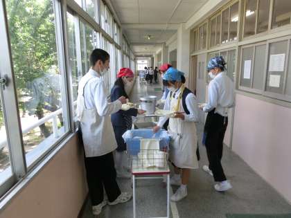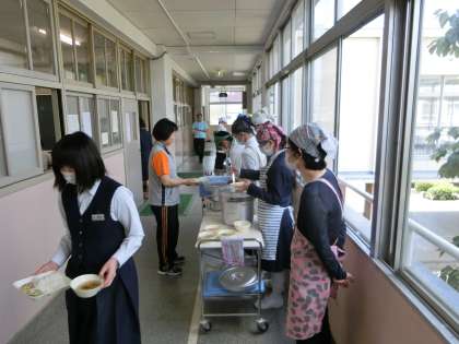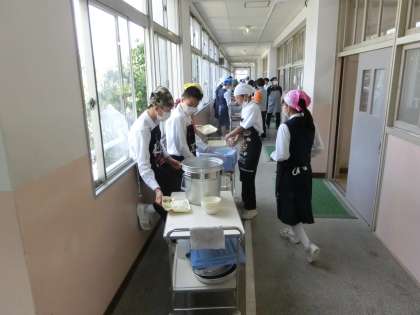 4限が終了し、一斉に配膳準備が始まりました。