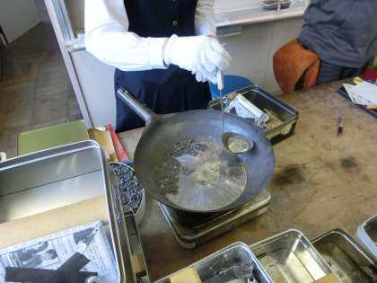 作業の早い生徒は、金属を溶かし始めました。
