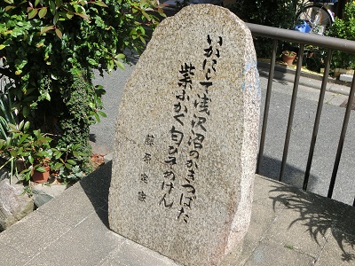 かきつばたの紫の花がまだ見られ、藤原定家の句碑もありました。