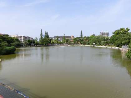 区民のオアシス「万代池」と、区民の足である「阪堺鉄道」