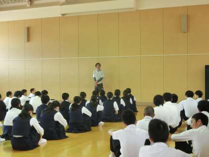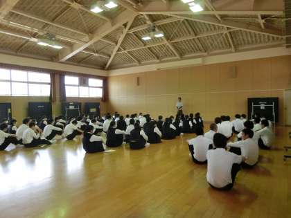 修学旅行、体育大会と続く大きな行事に向けて、みんなで気持ちを一つにして頑張ろうと、激励のことばがありました。