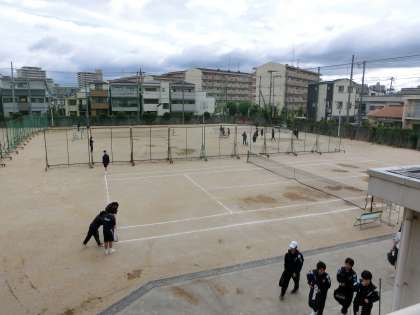 今日は、本校で、テニス部の7ブロック審判講習会が行われます。