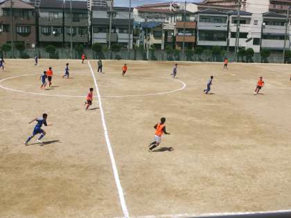 午後からは、本校のグラウンドでサッカー部が練習試合を行っています。