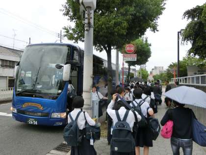 見送りの保護者の皆様や先生方に別れを告げて、出発します。