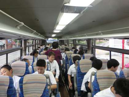 デラックスなバスに乗り込み、運転手さんとガイドさんにごあいさつ。
