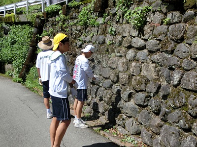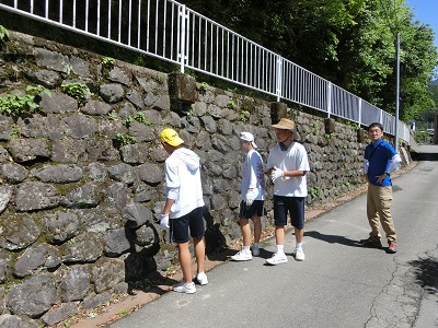 男子4名が、ご自宅前の石垣の雑草取りを行っています。