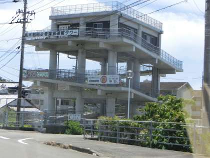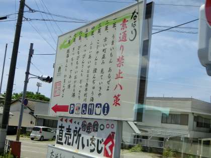 水切り瓦のある家屋、津波対策のタワー、龍馬の「船中八策」をひねった「奈半利の素通り禁止八策」なと、あちこちに土佐色が見受けられました。