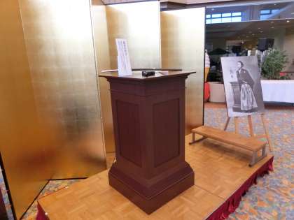 羽織・袴、刀にピストルの試着コーナー。