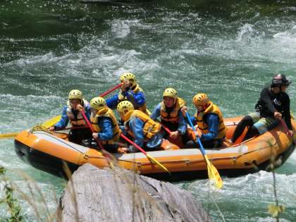 カメラマンさんは、絶叫を狙おうと、河原まで下りています。