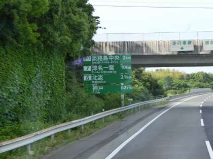 本州が眼下に。もうすぐ明石海峡大橋です。