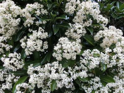 体育大会を前に、紅の花と、白の花が咲き乱れています。