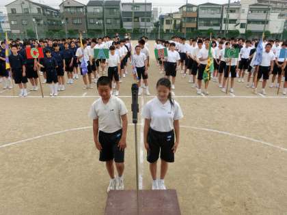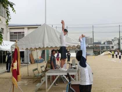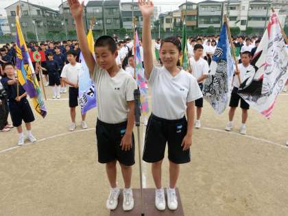 選手宣誓は恥ずかしがらず、ラジオ体操は力強くです。