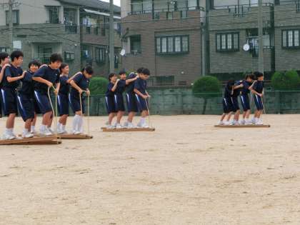 下駄をはいて、チームで進みます。