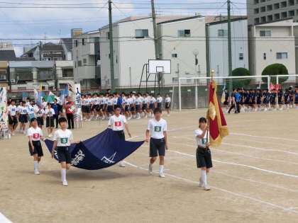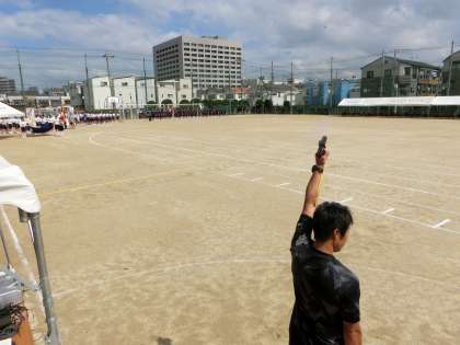 ご来賓、保護者の皆様もご来校いただき、ピストルの合図で入場行進が始まりました。