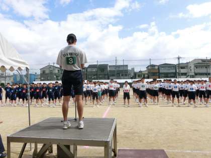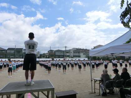 競技場の注意の後、プログラム1番のラジオ体操。