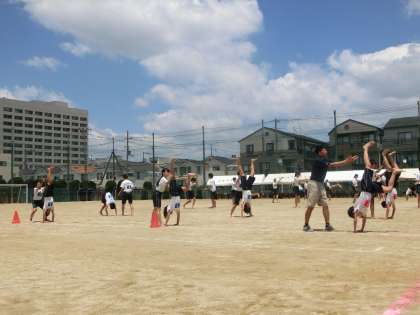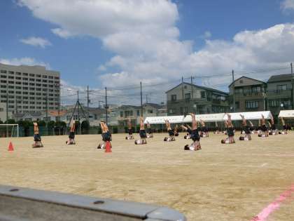 グラウンドいっぱいに広がっての組体操。