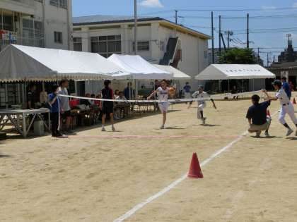 最後は、バスケット部のドリブルと、野球部のスライディング対決となり・・・、さて軍配は?
