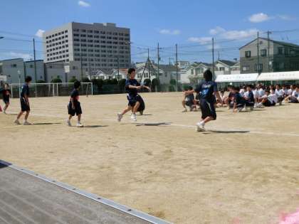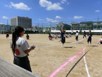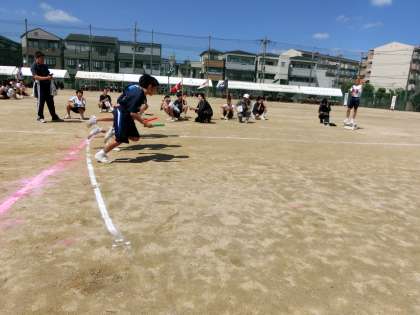 狭いバトンゾーンですが、前で待つか、後ろで待つか。