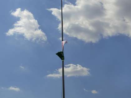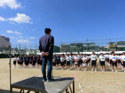 青空にひるがえった国旗・校旗が下され、閉会宣言。
