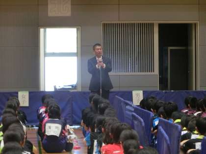 卓球部長の校長先生から、励ましのエールが述べられました。