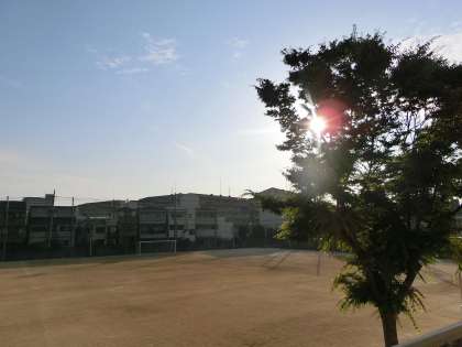 早朝から太陽が眩しく輝いています。
