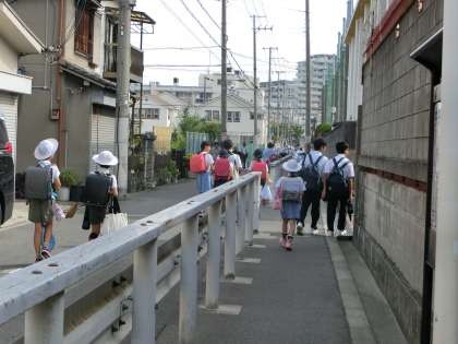 いつもどおり小中合わさって、登校にも活気があふれています。