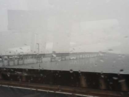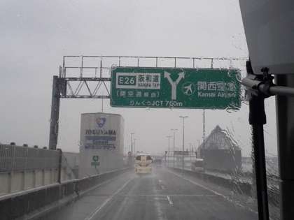 関空は雨でかすみ、見えません。