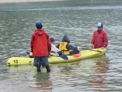 ぶつからないように、カヌーとカヤックのエリアまで漕ぎ出します。