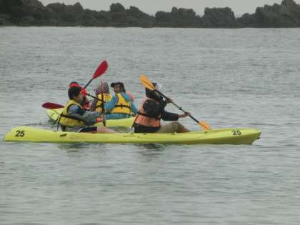 小雨の降る中ですが、波風はなく、すぐに慣れて、スイスイと進みます。