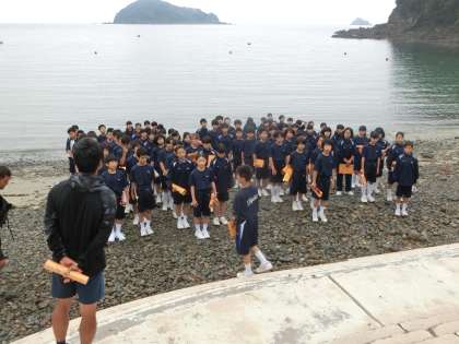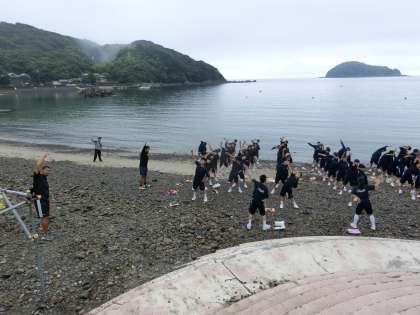 目をこすりながら、「朝の集い」で体を起こします。