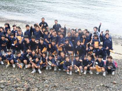 日高の海をバックに