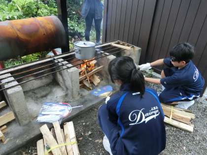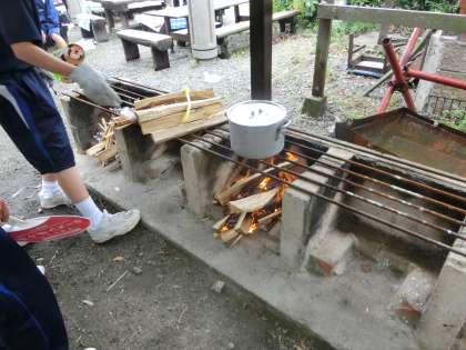 鍋かかけられ、肉や野菜の煮込みが始まりました。