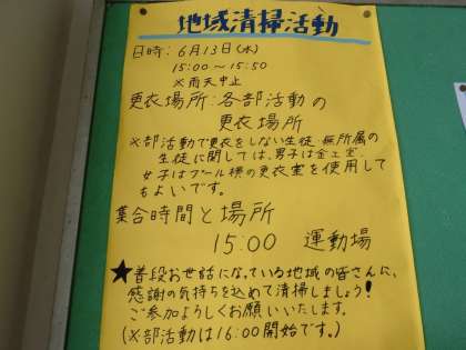 日頃のご支援に感謝し、明日の放課後、地域清掃活動に出かけます。