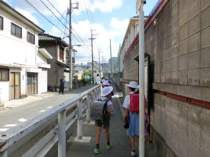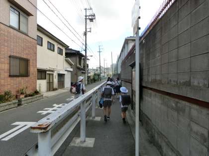 清々しい朝。今日も児童さん、生徒たちが元気良く登校です。