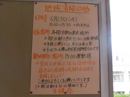 部活動部員と有志で、三つの公園やグラウンド周辺をきれいに。