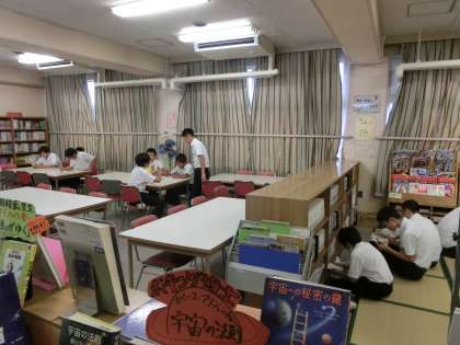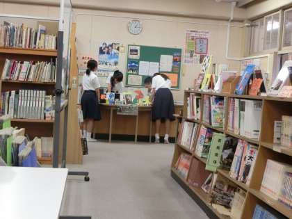 給食の後、短時間ですが、大勢の生徒たちが本を読みに利用しています。