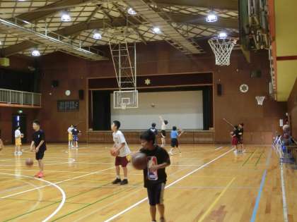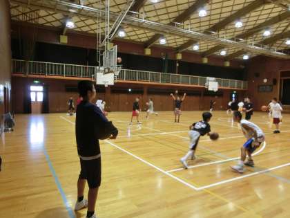 今朝もバスケットボール部が、汗を流しています。