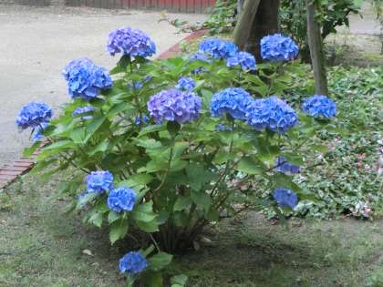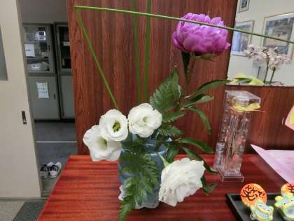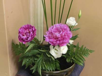 生け花のシャクヤク、中庭のアジサイが元気です。