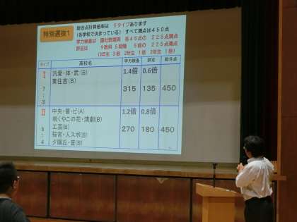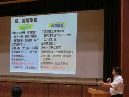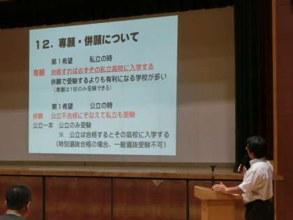 高校の公立と私立の違い、専願と併願、選抜方法など、わかりやすく説明されました。