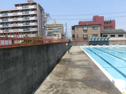 本日、大阪市教育委員会の施設整備課の職員の方がご来校され、プールのブロック塀を点検されました。