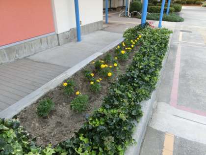 体育館前のお花が植え替えられました。