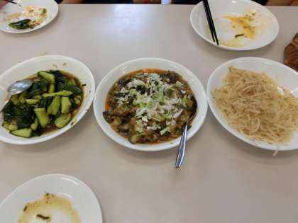 ピリ辛のキュウリともやし、麻婆ナスが完成しました!