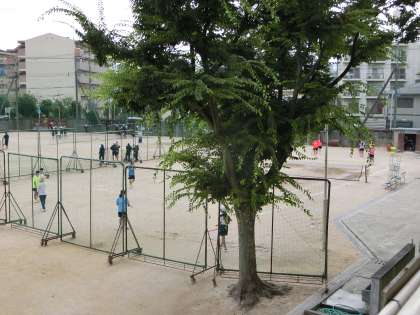 大変蒸し暑い中、テニスコートではテニス部が練習試合を。