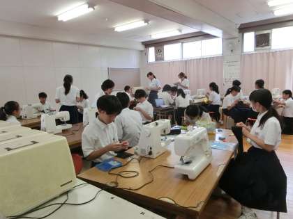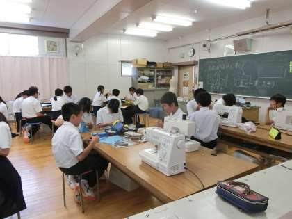 被服室での授業。