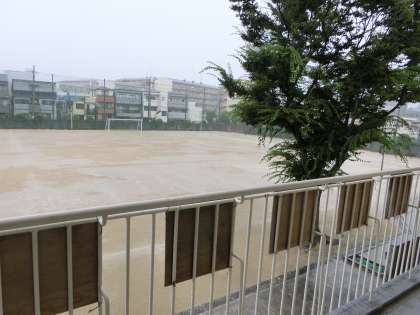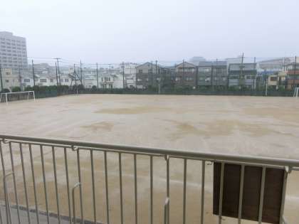 あっという間に、グラウンドは水浸し・・・。