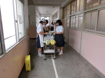 4時間目が終わり、各学年とも給食の配膳が始まりました。