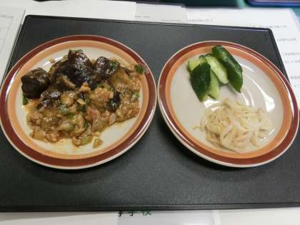 上手にできた「麻婆茄子、ピリ辛野菜」をいただきました。