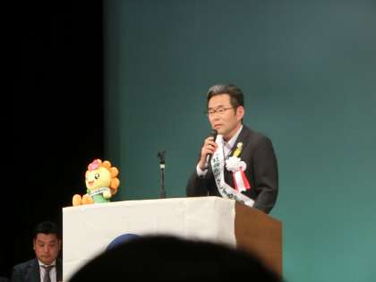式典では、小学生の標語コンクールで優秀作品が表彰されました。