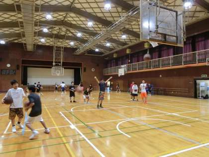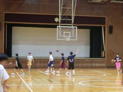 今朝もバスケットボール部が練習を積んでいます。
