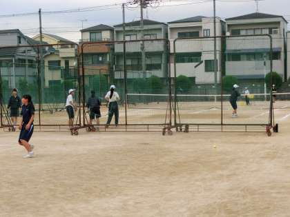 そんな中、グラウンドでは、テニス部とサッカー部が元気に練習しています。
